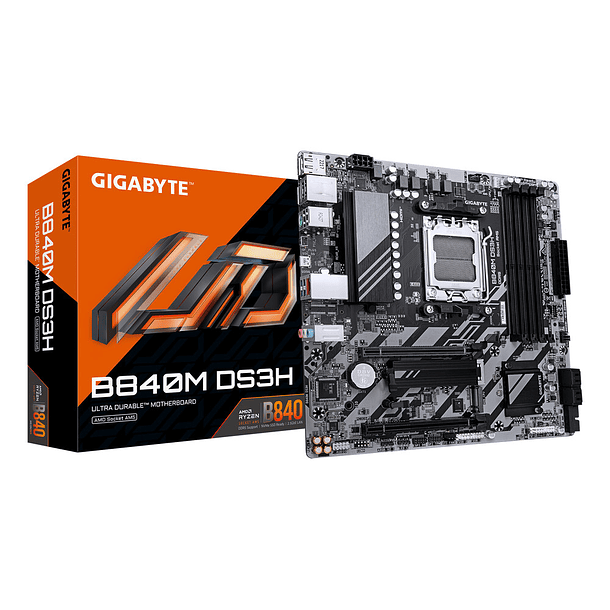 La GIGABYTE B840M DS3H es una placa madre micro-ATX confiable y moderna, diseñada para ofrecer estabilidad, rendimiento y compatibilidad con las últimas generaciones de procesadores AMD Ryzen en socket AM5. Es ideal para armar equipos de alto rendimiento, gaming o productividad, con una excelente relación costo-beneficio.
